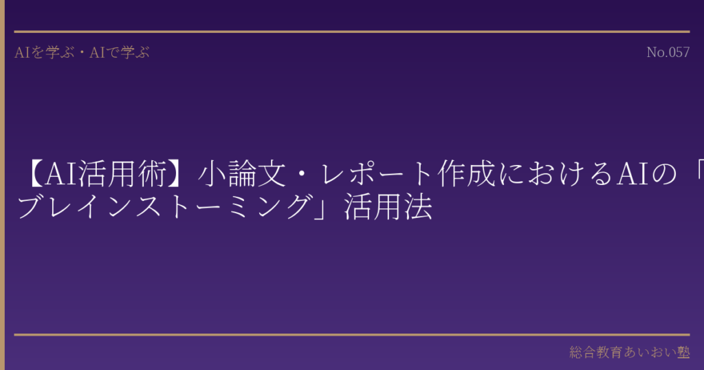 総合教育あいおい塾では、AIリテラシーと論述力を統合的に高める学習支援を行っております。小論文やレポートの作成にお子さまが苦戦されている場合は、どうぞお気軽にご相談ください。