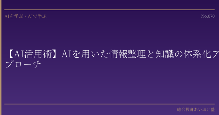 【AI活用術】AIを用いた情報整理と知識の体系化アプローチ