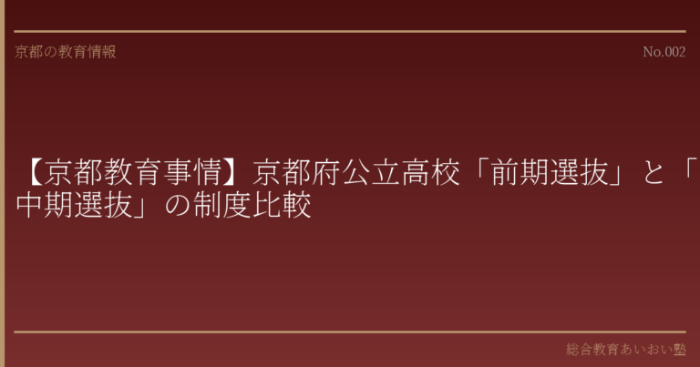 【京都教育事情】京都府公立高校「前期選抜」と「中期選抜」の制度比較