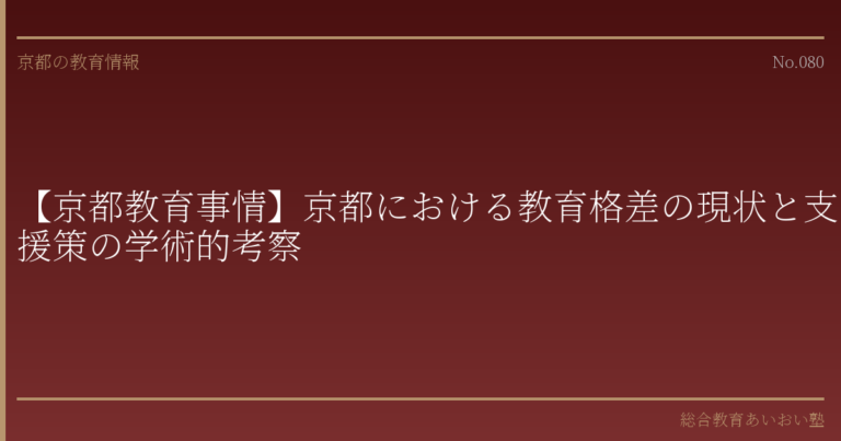 【京都教育事情】京都における教育格差の現状と支援策の学術的考察