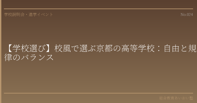 【学校選び】校風で選ぶ京都の高等学校:自由と規律のバランス