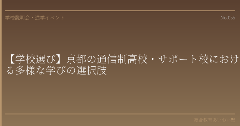 はじめに――「全日制だけが高校ではない」という視点を持つこと お子さまの進路を考えるとき、多くの保護者の方はまず全日制高校を思い浮かべられるのではないでしょうか。しかし近年、通信制高校やサポート校という選択肢が、これまでとは異なる意味合いを帯びてきています。 不登校を経験したお子さまの学び直し、起業やスポーツなど個性的な目標との両立、あるいは自分のペースで着実に学力を積み上げたいという希望――こうした多様なニーズに応える教育の受け皿として、通信制高校は確かな成長を遂げてまいりました。 文部科学省の調査によれば、通信制高校の生徒数は年々増加傾向にあり、全高校生のおよそ10人に1人が通信制に在籍しているとされています。これは一部の特殊な選択ではなく、高校教育の一つの柱として社会に定着しつつあることを示しています。 本記事では、京都府内の実情を踏まえながら、通信制高校・サポート校の制度的な仕組みから学校選びの具体的な着眼点までを丁寧に整理いたします。 基礎解説――通信制高校・サポート校の制度と仕組み 通信制高校とは何か 通信制高校は、学校教育法に基づく正規の高等学校です。全日制・定時制と同様に、卒業すれば高等学校卒業資格が得られます。高等学校卒業程度認定試験(高卒認定)とは異なり、正式な「高校卒業」として扱われる点は、まず押さえておくべき基本です。 通信制高校の学習は、主に以下の3つの柱で構成されます。 レポート(添削課題):教科書に基づいた課題を作成し、学校に提出して添削指導を受けます スクーリング(面接指導):一定の日数、学校に登校して対面での授業を受けます。年間数日で済む学校もあれば、週に数日通学するコースもあります 単位認定試験:各科目の学習到達度を測る試験を受け、合格すれば単位が認定されます 卒業要件は、74単位以上の修得、36か月以上の在籍、特別活動への一定時間以上の参加です。学年制ではなく単位制を採用している学校がほとんどであるため、留年という概念がなく、自分のペースで卒業を目指すことが可能です。 サポート校とは何か サポート校は、通信制高校に在籍する生徒の学習や生活面を支援する民間の教育施設です。ここで重要なのは、サポート校単体では高校卒業資格は得られないという点です。あくまで通信制高校との併用(ダブルスクール)という形態をとります。 サポート校が担う役割は多岐にわたります。 レポート作成の指導・学習サポート 通学リズムの確立と生活習慣の形成 大学受験に向けた学力指導 心理カウンセラーによるメンタルケア 課外活動や体験学習の提供 通信制高校の学習は自律性が求められるため、一人での学習管理が難しい生徒にとって、サポート校の存在は大きな助けとなります。 全日制高校との主な違い 項目 全日制高校 通信制高校 通学頻度 週5日(原則) 年数日〜週5日(コースにより異なる) 学習方法 対面授業が中心 レポート・スクーリング・試験の3本柱 修業年限 3年(学年制) 3年以上(単位制が主流) 時間の自由度 限定的 高い 卒業資格 高等学校卒業 高等学校卒業(同等) 深掘り研究――京都における通信制高校・サポート校の実情 京都府内の通信制高校の概況 京都府内には、公立・私立を含め複数の通信制高校が設置されています。また、他府県に本校を置く広域通信制高校が京都市内にスクーリング会場や学習センターを設けているケースも多く、実質的な選択肢は相当数にのぼります。 公立通信制高校としては、京都府立朱雀高等学校(通信制課程)が長い歴史を持ち、京都府における通信制教育の中核的な役割を果たしてきました。学費が比較的低廉であること、地域に根差した教育実績があることが特徴です。 私立通信制高校や広域通信制高校の京都キャンパスは、より多様なコース設計を持つ傾向にあります。週1日コースから週5日通学コース、オンライン完結型、専門分野特化型など、生徒の状況に合わせた柔軟な学び方が用意されています。 通信制高校の卒業率をどう読むか 通信制高校に対して「卒業が難しいのではないか」という不安を持たれる保護者の方は少なくありません。 文部科学省の統計では、通信制高校全体の卒業率は全日制と比較すると低い数値が示されることがあります。しかし、この数値を額面どおりに受け取るだけでは実態を見誤ります。 通信制高校には、仕事をしながら長期間かけて卒業を目指す社会人や、他校からの転編入生など、多様な背景を持つ生徒が在籍しています。そのため、3年間での卒業率が全日制と単純比較できない構造的な事情があります。 近年は、サポート体制の充実した私立通信制高校を中心に、3年間での卒業率が90%を超える学校も珍しくありません 。学校選びの際には、学校全体の卒業率だけでなく、「3年間での卒業率」と「中退率」を分けて確認されることをお勧めいたします。 進学・就職実績の現在地 かつて通信制高校は「進学に不利」とみなされる