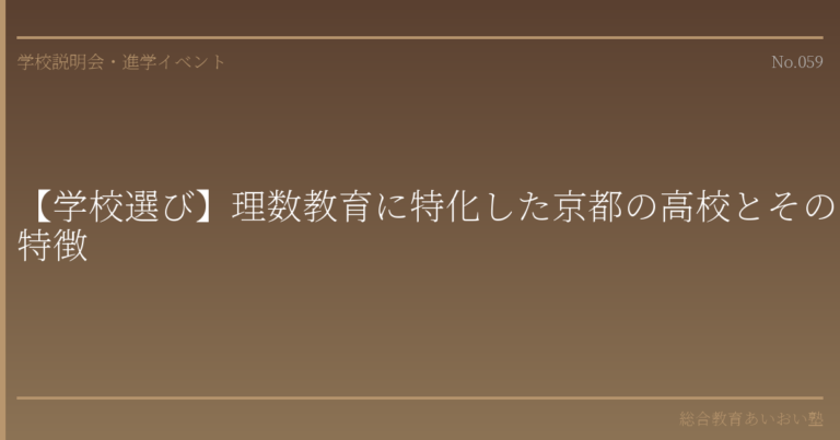 はじめに――理数教育の「質」を見極めるために お子さまが理系分野に興味を持ち始めたとき、あるいは将来的に理工系・医療系の進路を視野に入れているとき、「理数教育に力を入れている高校」を検討されるのは自然な流れです。 京都府には、理数教育に特化した学科やコースを設置する公立高校が複数あります。堀川高校探究科、嵯峨野高校京都こすもす科、洛北高校サイエンス科などは、その代表例として広く知られています。これらの学校の多くは、文部科学省が指定する「SSH(スーパーサイエンスハイスクール)」としての実績も有しており、一般的な理系コースとは一線を画す教育環境を提供しています。 しかし、「理数教育に強い」という評判だけで学校を選ぶことには注意が必要です。各校のカリキュラム設計や研究活動の方針には明確な違いがあり、お子さまの学びのスタイルや将来の志望に合った学校を選ぶことが、充実した高校生活と進路実現の双方にとって重要です。 本稿では、京都府内で理数教育に注力している主要な高校の特徴を整理し、比較検討のための視点を提供いたします。 理数教育特化型学科の基本構造 「専門学科」と「普通科理系コース」の違い まず基本的な制度の枠組みを確認しておきましょう。京都府の公立高校において理数教育を受けられる環境には、大きく分けて二つの種類があります。 専門学科(理数系)は、学科全体が理数教育を軸に設計されている学科です。探究活動や研究発表が正規のカリキュラムに組み込まれており、教育課程そのものが理数的な思考力の育成を目的として編成されています。堀川高校探究科、嵯峨野高校京都こすもす科(自然科学系統)、洛北高校サイエンス科がこれに該当します。 普通科内の理系コースは、普通科のカリキュラムをベースとしつつ、2年次以降に理系科目を重点的に学ぶ構成です。多くの高校で設置されていますが、専門学科ほど探究活動に特化した教育課程は組まれていない場合が一般的です。 理数教育の深度や研究活動の機会という観点では、専門学科のほうがより充実した環境を備えていると言えます。ただし、普通科の理系コースにも優れた指導体制を持つ学校はありますので、一概に専門学科が上位というわけではありません。 SSH(スーパーサイエンスハイスクール)とは SSHは、文部科学省が先進的な理数系教育を実践する高校を指定し、支援する制度です。指定校には研究開発費が交付され、大学・研究機関との連携、独自カリキュラムの開発、海外の教育機関との交流などが推進されます。 京都府内では、堀川高校、嵯峨野高校、洛北高校、桃山高校などがSSH指定を受けてきた実績があります。SSH指定校では、通常の学習指導要領を超えた独自の教育プログラムを実施できるため、より高度で実践的な理数教育が展開されています。 主要校の特徴と教育内容の比較 堀川高校 探究科 堀川高校は、1999年の学科改編を契機に進学実績を飛躍的に向上させたことで知られ、いわゆる「堀川の奇跡」として全国的に注目を集めました。探究科は、その教育改革の中核を担う学科です。 探究活動の特色 探究科の最大の特徴は、「探究基礎」と呼ばれる独自の授業です。生徒は自らの問いを設定し、仮説の構築、調査・実験、論文執筆、発表というプロセスを一年以上にわたって経験します。この探究活動は理系分野に限定されず、人文・社会科学系のテーマも扱われますが、科学的な思考法と論理的な表現力を養うという点では、理数教育の基盤を形成するものです。 カリキュラムの構成 理系・文系の区分は2年次から設けられますが、探究科全体として論理的思考力と表現力の育成が重視されています。大学や研究機関との連携による特別講義や実験実習の機会も設けられています。 進学実績 京都大学をはじめとする難関国公立大学への合格実績は京都府内の公立高校のなかでも上位に位置しています。 嵯峨野高校 京都こすもす科 嵯峨野高校の京都こすもす科は、「自然科学系統」と「人文・社会科学系統」の二つの系統を持つ専門学科です。理数教育の観点では、自然科学系統が中心的な役割を担っています。 自然科学系統の特色 自然科学系統では、数学・理科の授業時間数が普通科に比べて大幅に増加しており、実験・実習の機会も豊富に設けられています。SSH指定校としての取り組みを通じて、課題研究や科学コンテストへの参加が活発に行われています。 教育の方針 京都こすもす科は「高い知性と豊かな人間性の融合」を掲げており、理数系の専門性だけでなく、幅広い教養の涵養も重視しています。自然科学系統であっても、語学力や表現力の養成に一定の比重を置いている点が特徴的です。 進学実績 京都大学、大阪大学、神戸大学など近畿圏の難関国公立大学への進学者を多く輩出しています。 洛北高校 サイエンス科 洛北高校は、附属中学校を持つ中高一貫教育校としての側面も有しており、サイエンス科は高