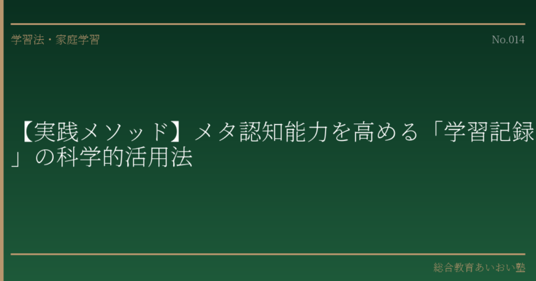 はじめに:「勉強したのに結果が出ない」という問いの正体 「毎日机に向かっているのに、なかなか成績が伸びない」——保護者の方からも、生徒本人からも、こうした声をいただくことは少なくありません。学習時間は十分に確保しているはずなのに、成果として現れにくい。この現象の背景には、単なる努力量の問題ではなく、自分自身の学び方を客観的に捉える力が十分に育っていない可能性があります。 この「自分の学び方を客観的に捉える力」は、心理学・教育学の分野でメタ認知(metacognition)と呼ばれています。近年の学習科学の研究では、メタ認知能力の高さが学力の向上と密接に関連していることが繰り返し示されており、効果的な学習を支える基盤として国内外で注目を集めています。 本稿では、メタ認知の基本的な概念を解説したうえで、それを日常の学習のなかで無理なく鍛えるための実践的なツール——学習記録(学習日記・振り返りノート)——の科学的な活用法をご紹介いたします。 メタ認知とは何か:「学ぶ自分」を見つめるもう一人の自分 メタ認知の心理学的定義 メタ認知とは、アメリカの発達心理学者ジョン・H・フラベルが1970年代に提唱した概念で、「自分自身の認知活動(思考・記憶・理解など)を対象として、それを認識し、制御する能力」を指します。より平易に表現すれば、「自分がどのように考え、学んでいるかを、一段高い視点から観察し、調整する力」ということになります。 メタ認知は、大きく二つの側面から構成されます。 メタ認知的知識:自分の得意・不得意、どのような学習方法が自分に合っているか、どの教科にどの程度の時間が必要かなど、自分自身の認知特性に関する知識 メタ認知的活動:学習の計画を立てる(プランニング)、学習中に理解度を確認する(モニタリング)、やり方がうまくいっていないときに修正する(コントロール)といった、認知プロセスを能動的に制御する活動 たとえば、英単語を暗記しているとき、「この単語は何度書いても覚えられない。書くだけでなく、例文のなかで使ってみたほうがよいかもしれない」と自分の学習法を見直す思考——これがメタ認知的活動の一例です。 メタ認知と学力の関連性 メタ認知能力と学業成績の間に正の相関があることは、多くの実証研究によって支持されています。教育心理学者ジョン・ハッティが800以上のメタ分析を統合した大規模研究では、メタ認知的方略(自らの学習を計画・モニタリング・評価する方略)の効果量は非常に高い水準に位置づけられており、学力に影響を及ぼす要因のなかでも上位に入ることが報告されています。 また、国立教育政策研究所が実施した調査においても、自分の学習方法を振り返り改善する習慣を持つ生徒ほど、各教科の正答率が高い傾向があることが示されています。 重要なのは、メタ認知能力は生まれ持った固定的な能力ではなく、適切な訓練と習慣化によって後天的に伸ばすことができるという点です。そして、その有力な手段の一つが「学習記録」なのです。 深掘り研究:なぜ「書く」ことがメタ認知を育てるのか 外化がもたらす認知的効果 メタ認知を鍛えるうえで「学習記録を書く」という行為が有効とされる最大の理由は、外化(externalization)の効果にあります。 人間の認知活動は、通常は頭のなかだけで行われるため、本人にとっても漠然としたものになりがちです。しかし、自分の学習プロセスを文章として書き出す——すなわち外化する——ことで、思考は具体的な形を持ち、客観的に観察できる対象へと変わります。 認知科学の研究では、外化には以下のような効果があることが示されています。 思考の明確化:曖昧だった理解や疑問点が、言語化することで輪郭を帯びる パターンの認識:記録を蓄積・比較することで、自分の学習における傾向や癖が可視化される 距離化(distancing)効果:書き出されたものを読み返すことで、自分の学びを「他者の目」で眺めることが可能になる つまり、学習記録を書くという行為は、単なる「日記」や「メモ」ではなく、自分自身の学習を研究対象として観察・分析するための科学的ツールとして機能するのです。 振り返り(リフレクション)研究の知見 教育学における「振り返り(リフレクション)」の研究は、アメリカの哲学者・教育学者ジョン・デューイにまで遡ります。デューイは、経験そのものが学びを生むのではなく、経験に対する振り返りこそが学びの本質であると論じました。 この考え方は現代の学習科学にも受け継がれており、デイヴィッド・コルブの経験学習モデルでは、学習は「具体的経験 → 内省的観察 → 抽象的概念化 → 能動的実験」という四つの段階を循環することで深化するとされています。学習記録は、このモデルにおける「内省的観察」と「抽象的概念化」の段階を意識的に実行するための仕組みにほかなりません。 さらに近年の研究では、構造化された振り返り(ただ感想を書くのではなく、