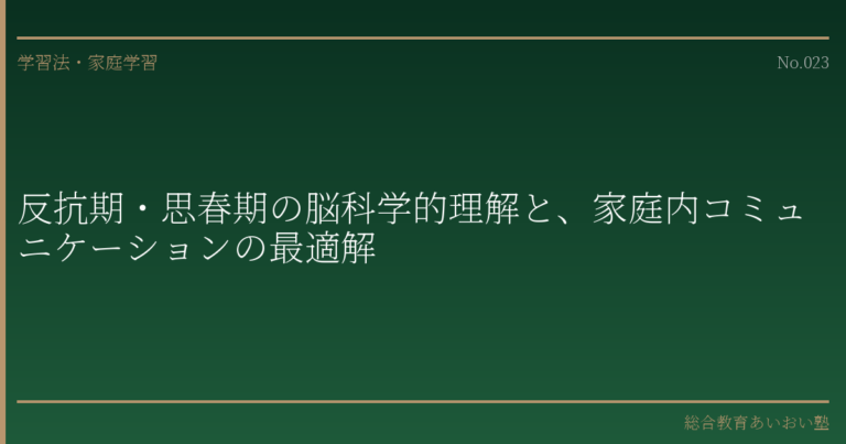はじめに――「なぜ、あの子が変わってしまったのか」という問いの前に 小学校高学年から中学生にかけて、それまで素直だったお子さまが急に口数を減らしたり、些細なことで激しく反発するようになったりする――。そうした変化に戸惑い、「育て方を間違えたのだろうか」と自責の念を抱かれる保護者の方は、決して少なくありません。 しかし、神経科学の知見は、思春期の反抗的な言動の多くが、脳の発達過程における構造的・機能的な変化に起因する生物学的現象であることを示しています。これは「性格の問題」でも「しつけの失敗」でもなく、脳が大人へと成熟していく過程で必然的に生じる、ある種の「成長痛」です。 本稿では、思春期の脳で何が起きているのかを神経科学の観点から解説し、その理解に基づいた家庭内コミュニケーションの最適なあり方を考察いたします。 1. 思春期の脳――何が起きているのか 1-1. 脳は「後ろから前へ」成熟する ヒトの脳は、誕生から25歳前後にかけて、長い時間をかけて成熟していきます。重要なのは、脳のすべての領域が同時に発達するわけではないという点です。 脳の成熟は、後方の領域(視覚野や感覚野など、基本的な知覚を担う部位)から始まり、前方の領域へと段階的に進行します。そして、最後に成熟するのが、額の裏側に位置する「前頭前皮質(prefrontal cortex: PFC)」です。 前頭前皮質は、以下のような高次認知機能を司る、脳の「司令塔」ともいえる領域です。 機能 具体的な役割 衝動制御 感情的な反応を抑え、適切な行動を選択する 意思決定 複数の選択肢を比較し、長期的な結果を考慮して判断する 計画立案 将来の目標に向けた段階的な行動計画を立てる 共感・視点取得 相手の立場に立って考え、他者の感情を理解する リスク評価 行動の結果を事前に予測し、危険を判断する 思春期のお子さまの前頭前皮質は、まだ発達の途上にあります。つまり、大人と同じ水準の衝動制御や合理的判断を、脳の構造上、まだ十分に行えない状態にあるのです。 1-2. シナプスの「刈り込み」と髄鞘化 思春期の脳では、二つの重要な構造的変化が同時に進行しています。 第一に、シナプスの刈り込み(synaptic pruning)です。 幼児期から児童期にかけて過剰に形成されたシナプス(神経細胞同士の接合部)のうち、使用頻度の低いものが選択的に除去されていきます。これは、神経回路をより効率的で精緻なものへと再構成するための、いわば「脳の最適化工程」です。 第二に、髄鞘化(myelination)の進行です。 神経軸索を覆うミエリン鞘(髄鞘)が形成されることで、神経信号の伝達速度が飛躍的に向上します。しかし、この髄鞘化もまた、後方の領域から前方へと順次進行するため、前頭前皮質における神経伝達の効率化は最も遅れて完了します。 これらの過程は、脳がより高度な機能を獲得するための不可欠なプロセスですが、完了するまでの間、前頭前皮質の機能は不安定な状態に置かれます。 1-3. 扁桃体の過活動――「感情の嵐」の正体 前頭前皮質が未成熟である一方、思春期の脳では、感情処理の中枢である扁桃体(amygdala)の活動が相対的に高まっていることが、機能的MRI(fMRI)を用いた脳画像研究によって示されています。 扁桃体は、恐怖、怒り、不安、興奮といった情動反応を即座に生成する領域です。成人の脳では、扁桃体からの情動信号を前頭前皮質が評価・調節し、適切な行動へと導きます。しかし、思春期の脳では、前頭前皮質による制御が十分に機能しないため、扁桃体が生み出す強い感情がそのまま行動に直結しやすいのです。 この状態を、研究者は「アクセルが強力なのにブレーキが未完成な車」と喩えることがあります。思春期のお子さまが些細な指摘に対して激昂したり、合理的に見れば不利な選択をあえて取ったりする背景には、この神経回路の発達的なアンバランスが存在します。 2. ホルモンと報酬系――行動変化のもう一つの要因 2-1. 性ホルモンと情動の関係 思春期には、性腺刺激ホルモンの分泌増加に伴い、テストステロンやエストロゲンといった性ホルモンの血中濃度が急激に上昇します。これらのホルモンは、身体の二次性徴を促すだけでなく、扁桃体をはじめとする情動関連領域の感受性を変化させることが知られています。 特に、テストステロンの増加は攻撃性や支配性への感受性を高め、エストロゲンの変動は情動の不安定さと関連することが動物実験およびヒトを対象とした研究で報告されています。 お子さまの気分が日によって、あるいは一日の中でも大きく変動するのは、こうした内分泌環境の急激な変化が一因です。 2-2. 報酬系の過敏化と「刺激を求める脳」 思春期には、脳の報酬系(reward system)、とりわけ腹側線条体におけるドーパミン受容体の感受性が一時的に高まることが明らかにされています。 ドーパミンは、報酬や快楽に関連する神経伝達物質です。思春期の報酬系は、新奇な刺激や社会的な承認に対して成人より