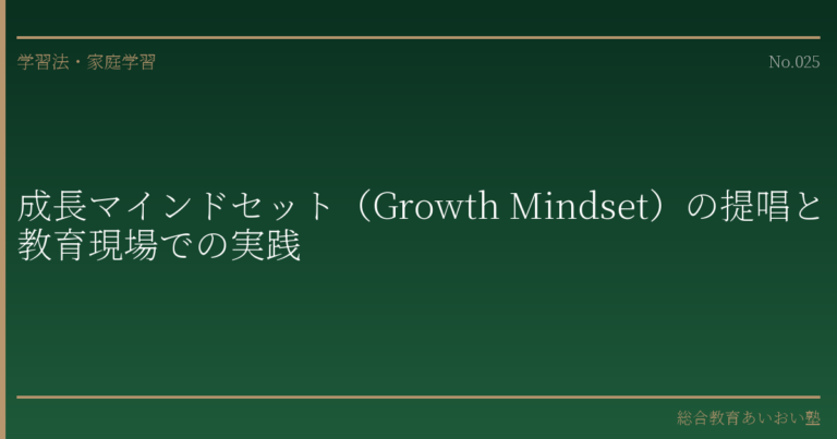 成長マインドセット(Growth Mindset)の提唱と教育現場での実践