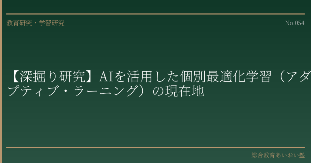 アダプティブ・ラーニングは、AIの力を借りて「一人ひとりに合った学び」を実現しようとする、意義のある技術的挑戦です。基礎知識の効率的な定着や、つまずきの早期発見といった領域では、すでに一定の成果を示しています。