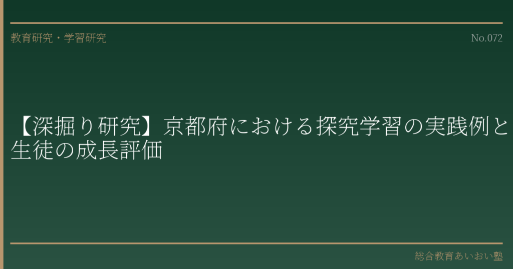 本記事は、総合教育あいおい塾の教育研究に基づく情報提供を目的としています。京都府内の各学校の探究プログラムの詳細については、各学校の公式情報をご確認ください。