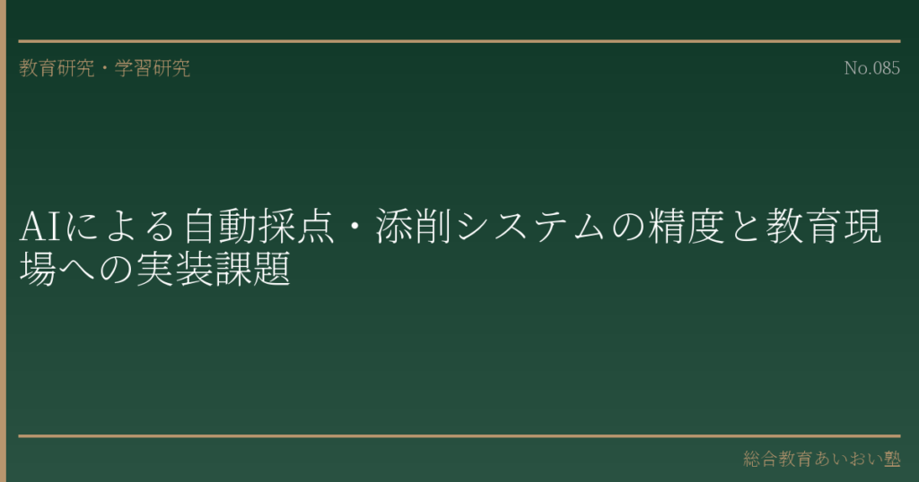 本稿はAI自動採点・添削技術に関する研究動向の整理を目的としたものであり、特定のサービスや製品を推奨するものではありません。技術の進歩は急速であるため、最新の精度・機能については各サービスの公式情報をご確認ください。