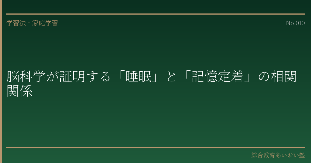 本稿では、睡眠と記憶定着の関係を神経科学の知見に基づいて解説し、お子さまの学習効果を最大化するための睡眠習慣について考察いたします。