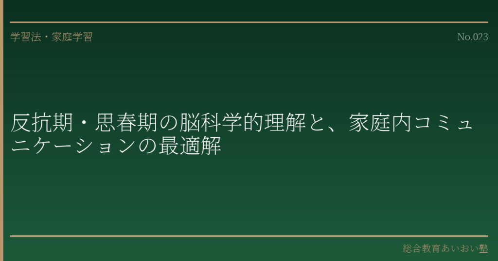 本稿は、思春期の脳発達に関する神経科学の一般的な知見に基づく教育情報提供を目的としたものであり、医学的な診断や治療に関する助言を行うものではありません。お子さまの行動や情緒面で深刻なご懸念がある場合は、医療機関や専門家への相談をお勧めいたします。