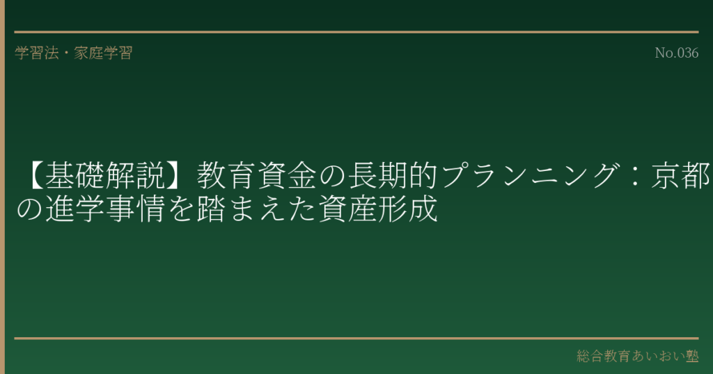 本稿では、京都における進学事情を踏まえながら、教育資金の長期的な計画の立て方と、具体的な準備手段について整理してまいります。なお、本稿は特定の金融商品を推奨するものではなく、あくまで選択肢を俯瞰するための情報提供を目的としております。