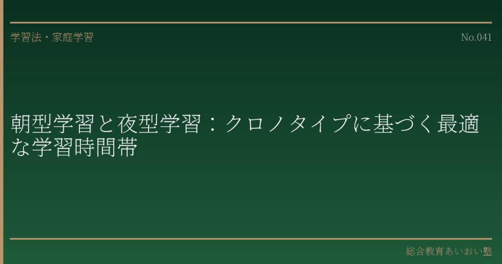どの時間帯に勉強するかよりも、十分な睡眠時間を確保することのほうが、学習効率に対する影響は大きいと考えられます。クロノタイプに合わせた学習スケジュールは、あくまでも適切な睡眠時間の確保を前提として設計してください。