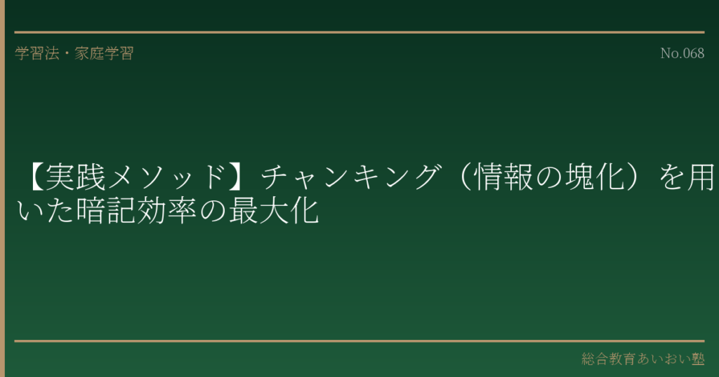 その代表的な方法が、本稿で取り上げるチャンキング(chunking:情報の塊化)です。バラバラの情報を意味のあるまとまり(チャンク)に再構成することで、脳の記憶容量を効率的に活用する技法であり、あらゆる教科の暗記に応用できる汎用性の高い学習メソッドです。