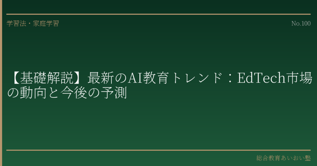 本記事では、EdTech市場の最新動向を概観し、保護者の皆さまがお子さまの教育環境を考えるうえで参考となる見通しを整理いたします。流行に左右されず、本質を見極めるための視座をお伝えすることを目指します。