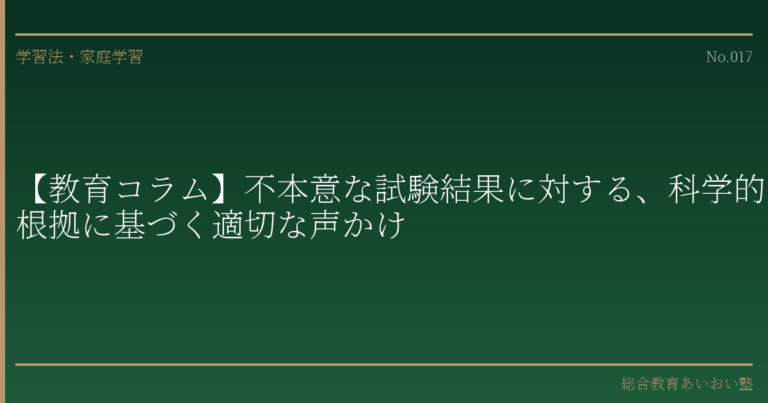 【教育コラム】不本意な試験結果に対する、科学的根拠に基づく適切な声かけ
