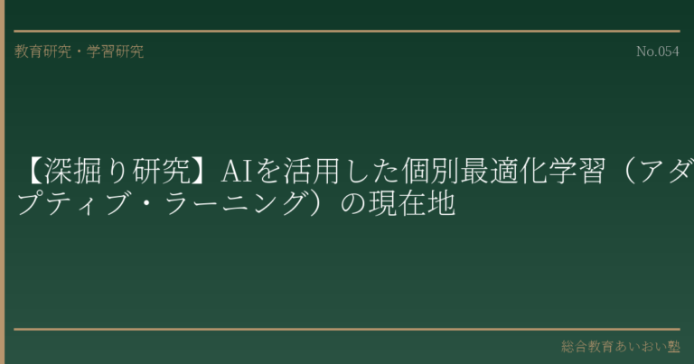 【深掘り研究】AIを活用した個別最適化学習(アダプティブ・ラーニング)の現在地